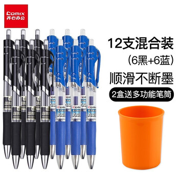 14.32元抢购齐心(COMIX)中性笔按动签字笔商务办公黑笔速干红蓝碳素水笔考试专用水性笔 0.5mm子弹头 经典速干混合装6黑+6蓝(12支装)