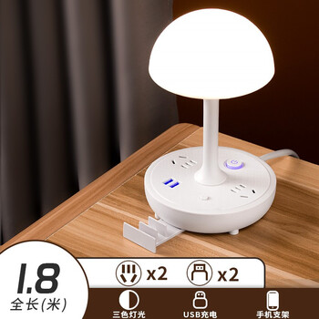 71.92元抢购誉煌(Huang Yu)LED台灯学习床头卧室儿童阅读插电小台灯学生电脑灯多功能插座三档色小夜灯 三档色光蘑菇灯+2插位+2USB 全长1.8米