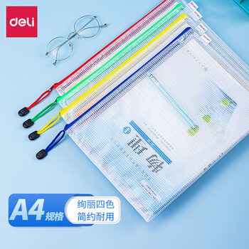 下单购买得力(deli)10只4色混装拉链袋 A4软质文件袋 小学生中学生的试卷收纳 10袋装 27040